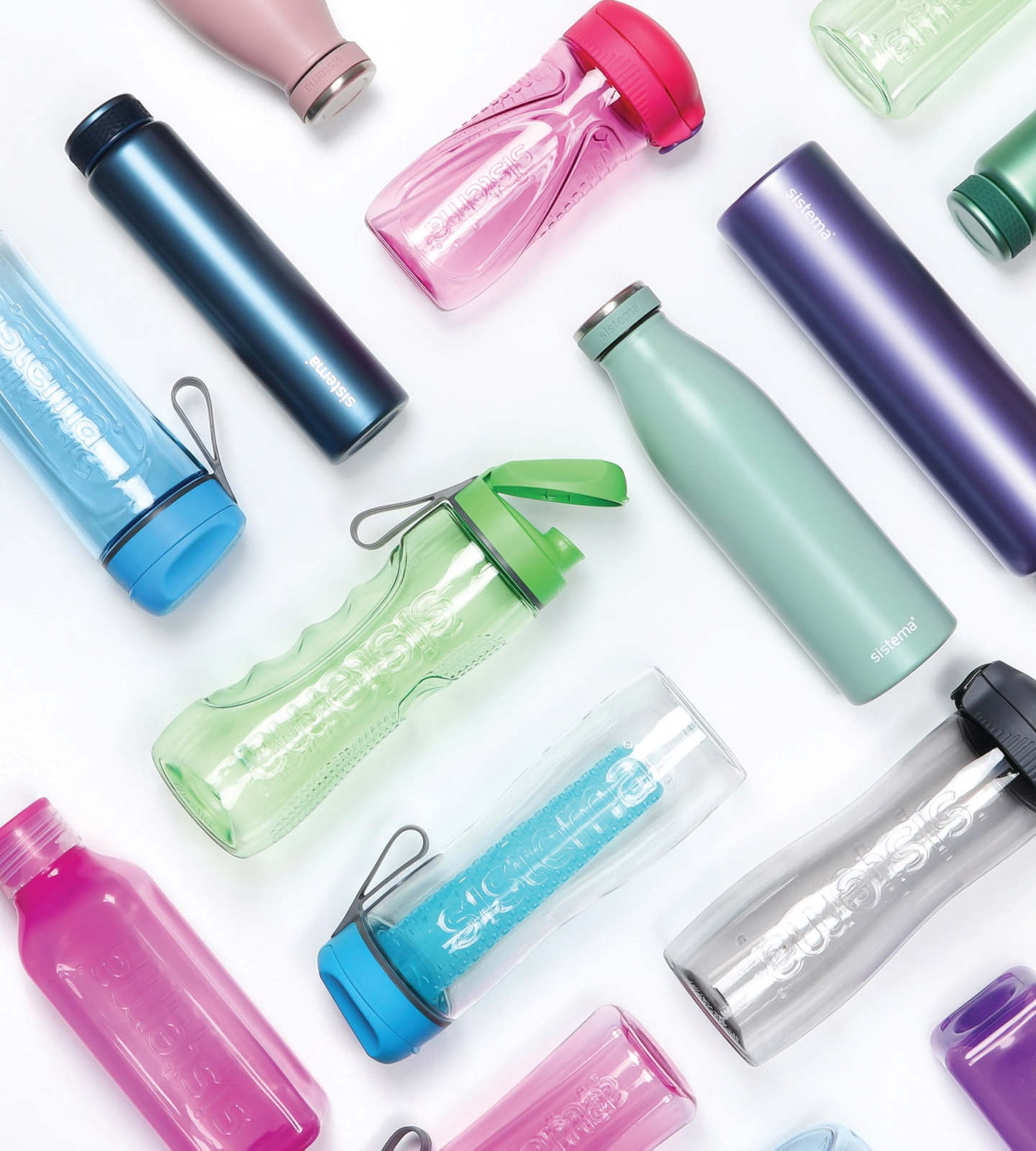 Пляшки для води Sistema виключають можливість пролити вміст завдяки запатентованій системі закривання кришки Twist 'n' Sip. Навіть при активних дії напій з пляшки не виллється. Пляшки не містять ВРА (бісфенол А), сертифіковані навіть для дитячого харчування, підходять для використання в холодильнику, морозильній камері і мікрохвильової печі (без кришки).