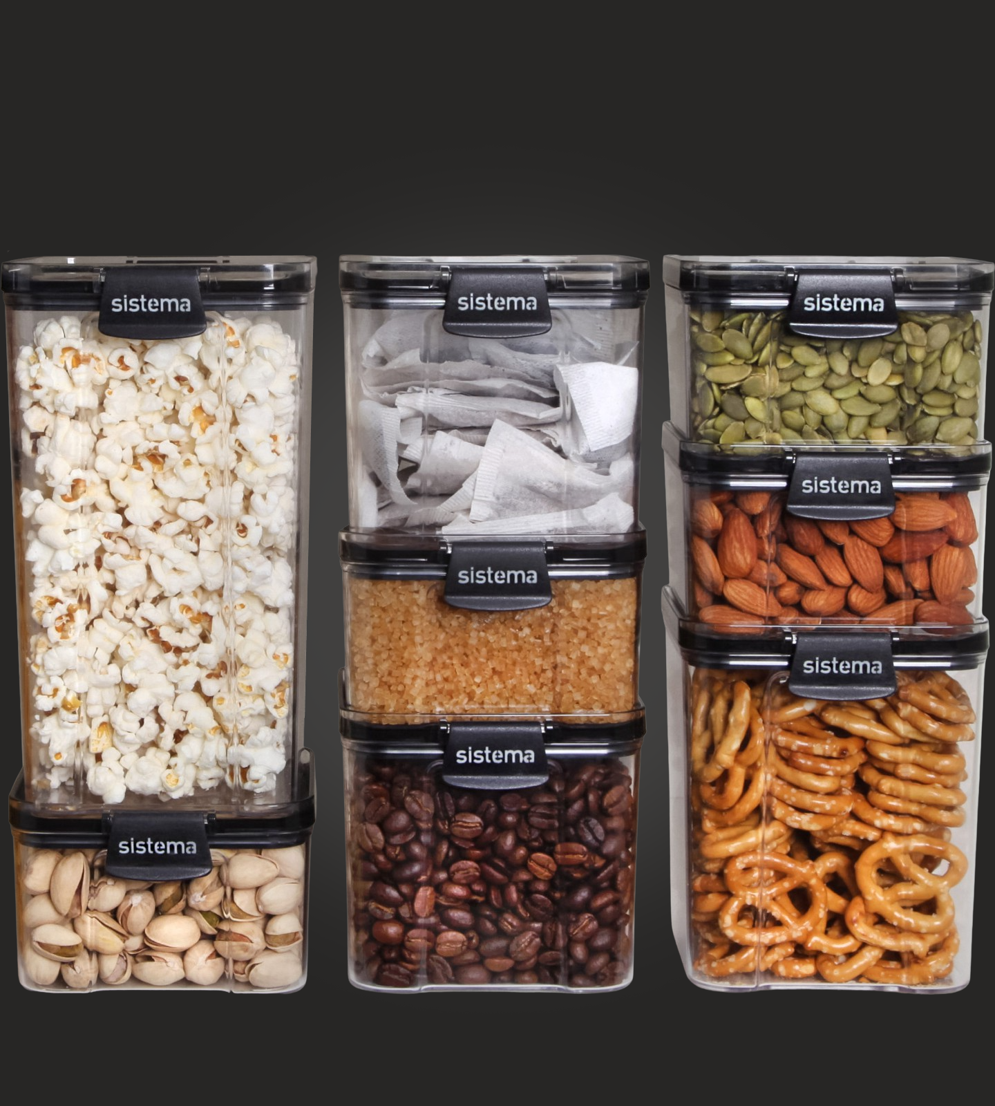 Контейнер харчовий Sistema — ідеальне рішення для зберігання круп, насіння, каш, макаронних виробів, печива, заощаджує місце завдяки модульній системі зберігання. Контейнер зберігає свіжість продуктів, має силіконовий ущільнювач і щільно закривається завдяки фірмовим защіпкам Sistema. Легко мити — можна мити в посудомийній машині. Контейнер розроблено й вироблено в Новій Зеландії, безпечний для здоров'я людини, виготовлено із тритану — високоміцного, небиткого й кришталево прозорого пластику, який не містить бісфенолу А і фталатів.